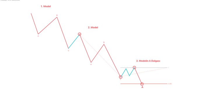 ölü kedi sıçramasına geri dönersek, her bir kırmızıyı model olarak isimlendiriyoruz ve her bir model 3 iç parça ile oluşum gösterir (5 parça da olur fakat o sadece en son modelde olur.) Görselde de bunu görüyoruz. A-B-C olarak ilk kırmızı model, devamında 5 parçalı ikinci model.